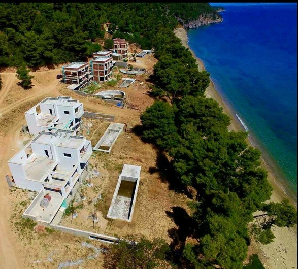 Σε ένα καταπράσινο περιβάλλον στο Παλιούρι Χαλκιδικής δίπλα στην Θάλασσα, βρίσκονται Πέντε Ημιτελής Βίλλες των 300 τμ έκαστη.
